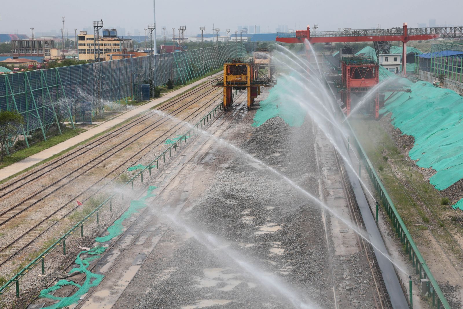 6月12日,公司定時開啟噴淋裝置,一排排的水幕準確的覆蓋在原料場地存放的石灰石、焦炭和原煤堆上,消除裝卸作業(yè)時粉塵飄散對周邊環(huán)境的影響。這是公司積極落實市委市政府開展的降塵治車、保衛(wèi)藍天行動的一種舉措。公司主動作為,對露天原料堆場進行整體覆蓋,每日定時噴水降塵,確保清潔文明生產(chǎn)。