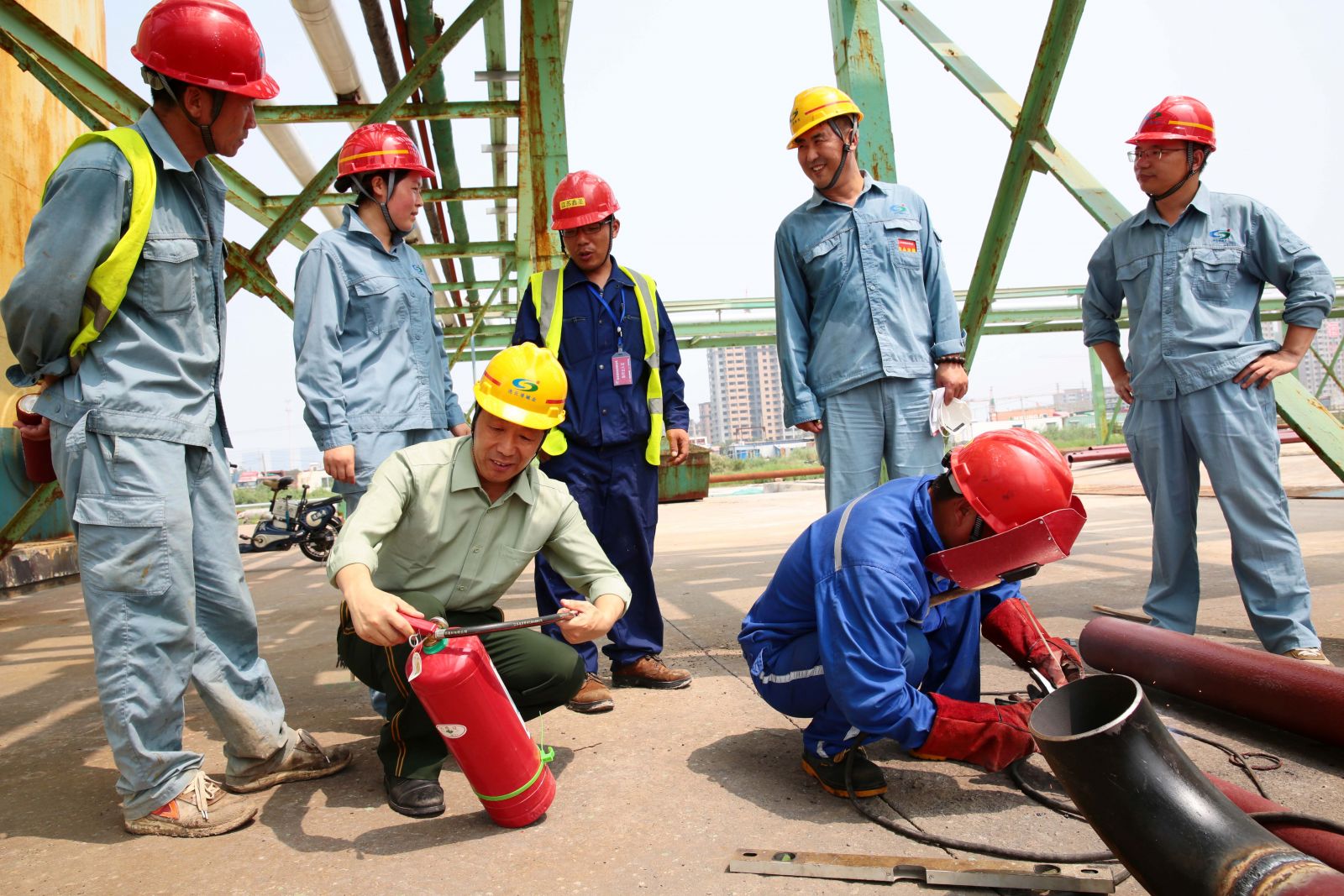 7月24日,公司安全生產(chǎn)大檢查人員冒著34度的高溫,分兩組對(duì)氨庫、氣瓶庫、柴油庫、酸堿庫以及露天高溫鋼材切割現(xiàn)場(chǎng)等場(chǎng)所進(jìn)行安全隱患大排查,對(duì)發(fā)現(xiàn)的問題做到即查即改,確保高溫天氣安全生產(chǎn)。