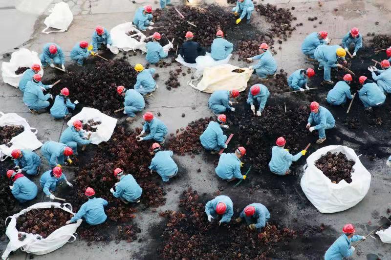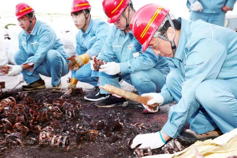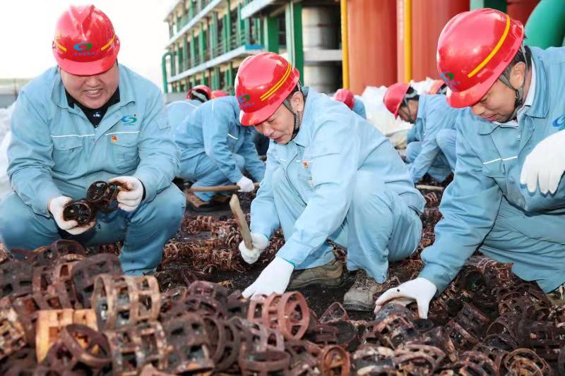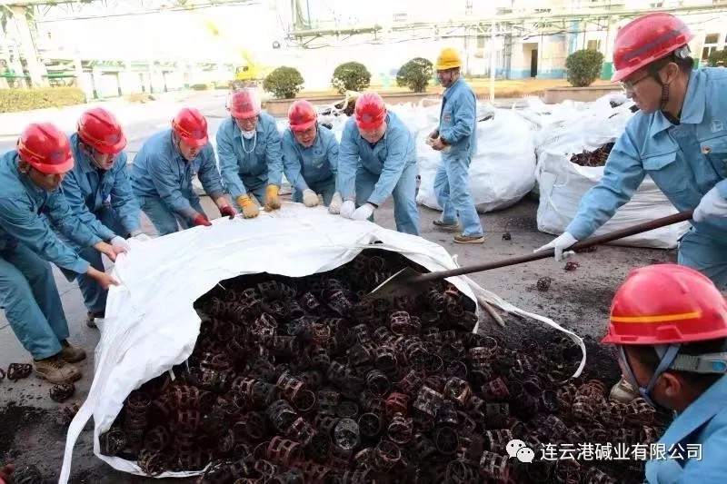 由于清理工作全靠人力完成,崗位人員一邊要維持生產(chǎn),一邊要清理填料,工作量非常大。11月12日下午,公司黨委書記、董事長張衛(wèi)民在調(diào)研重堿車間生產(chǎn)現(xiàn)場時了解到這一情況后,當機立斷,立即組織公司領導及各部門黨員干部義務勞動,協(xié)助重堿車間完成鮑爾環(huán)填料清理回收工作。