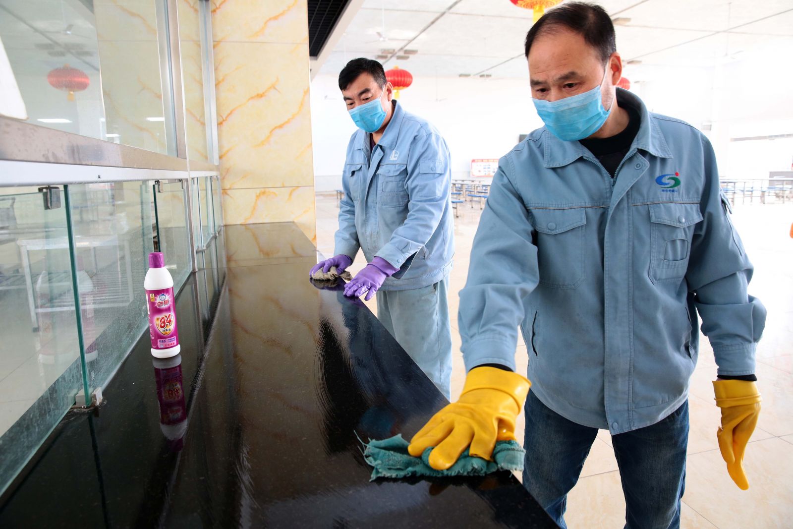 公司內(nèi)部的事宜由副總經(jīng)理焦旺盛統(tǒng)一負(fù)責(zé)安排落實(shí),嚴(yán)抓內(nèi)部管控。健康安環(huán)部負(fù)責(zé)布置落實(shí)各班組建立職工體溫臺(tái)帳,發(fā)現(xiàn)異常情況及時(shí)報(bào)告。加強(qiáng)檢查頻率,建立日?qǐng)?bào)告制度,負(fù)責(zé)廢舊口罩回收處理;對(duì)接供應(yīng)部做好應(yīng)急防護(hù)物資的備、采工作,每天統(tǒng)計(jì)好公司的應(yīng)急物資并按要求上報(bào)上級(jí)部門;安排好人員的測溫工作。物管中心定時(shí)對(duì)食堂、浴室等公共場所消毒;保衛(wèi)部加強(qiáng)門禁管理,做好進(jìn)入公司人員的監(jiān)管,非我公司職工未經(jīng)批準(zhǔn)一律暫停進(jìn)入公司;同時(shí)負(fù)責(zé)口罩的發(fā)放;設(shè)備部、技術(shù)部通知公司外委承包商暫停進(jìn)廠作業(yè);人力資源部負(fù)責(zé)通知?jiǎng)趧?wù)承包商,除從事正常倒班的外用工外,其余一律暫停進(jìn)廠作業(yè);黨群部負(fù)責(zé)通過公司內(nèi)網(wǎng)、微信公眾號(hào)等宣傳平臺(tái)加大防控工作的正面宣傳和引導(dǎo)的力度,多宣傳一些防控知識(shí),多宣傳防控期間公司一些典型照片、事跡,同時(shí)向上級(jí)主管部門報(bào)道;辦公室做好節(jié)假日延期的相關(guān)通知與安排,及時(shí)傳達(dá)上級(jí)精神,協(xié)調(diào)、配合好公司內(nèi)部各部門、車間做好防控的相關(guān)工作。