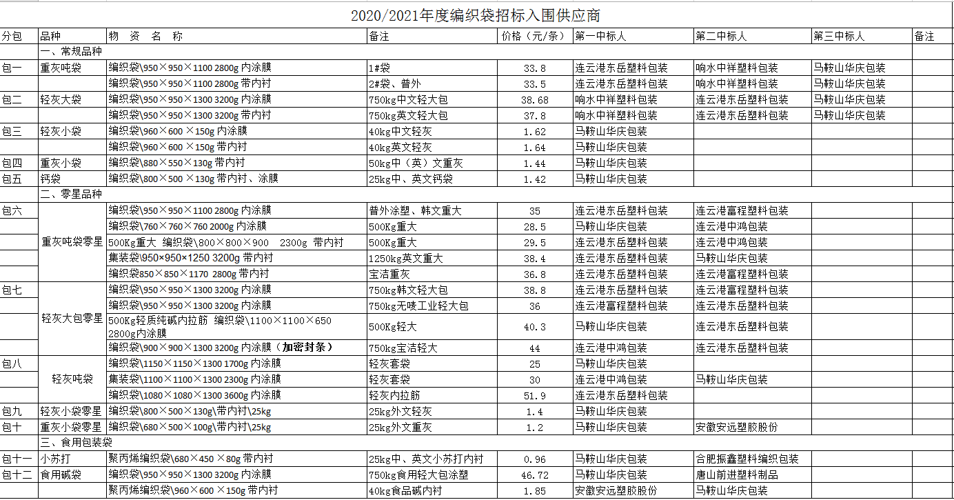 連云港堿業(yè)有限公司編織袋招標評審結(jié)果公示
