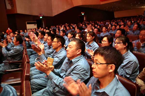 公司黨委書記、董事長張衛(wèi)民首先代表公司黨委向辛勤奮戰(zhàn)在各條戰(zhàn)線的干部職工致以崇高的敬意!在演出致辭中,他說,在堿業(yè)公司三十年的發(fā)展歷程中,全體職工與企業(yè)同呼吸、共命運(yùn),踏著《咱們工人有力量》的鏗鏘旋律,在改革、創(chuàng)新、發(fā)展的實(shí)踐中,在各自的工作崗位上斗志昂揚(yáng)、忘我工作。近日,公司被評為全市國資系統(tǒng)“先進(jìn)集體”稱號(hào);“公司劃轉(zhuǎn)地方以來利潤首次突破8000萬元”被評為“2017年度國有企業(yè)最具影響力十佳事項(xiàng)”,經(jīng)營指標(biāo)同比大幅增長……每一項(xiàng)業(yè)績,每一次進(jìn)步,每一次成長,無不凝結(jié)著大家的勤勞與智慧、心血與汗水。