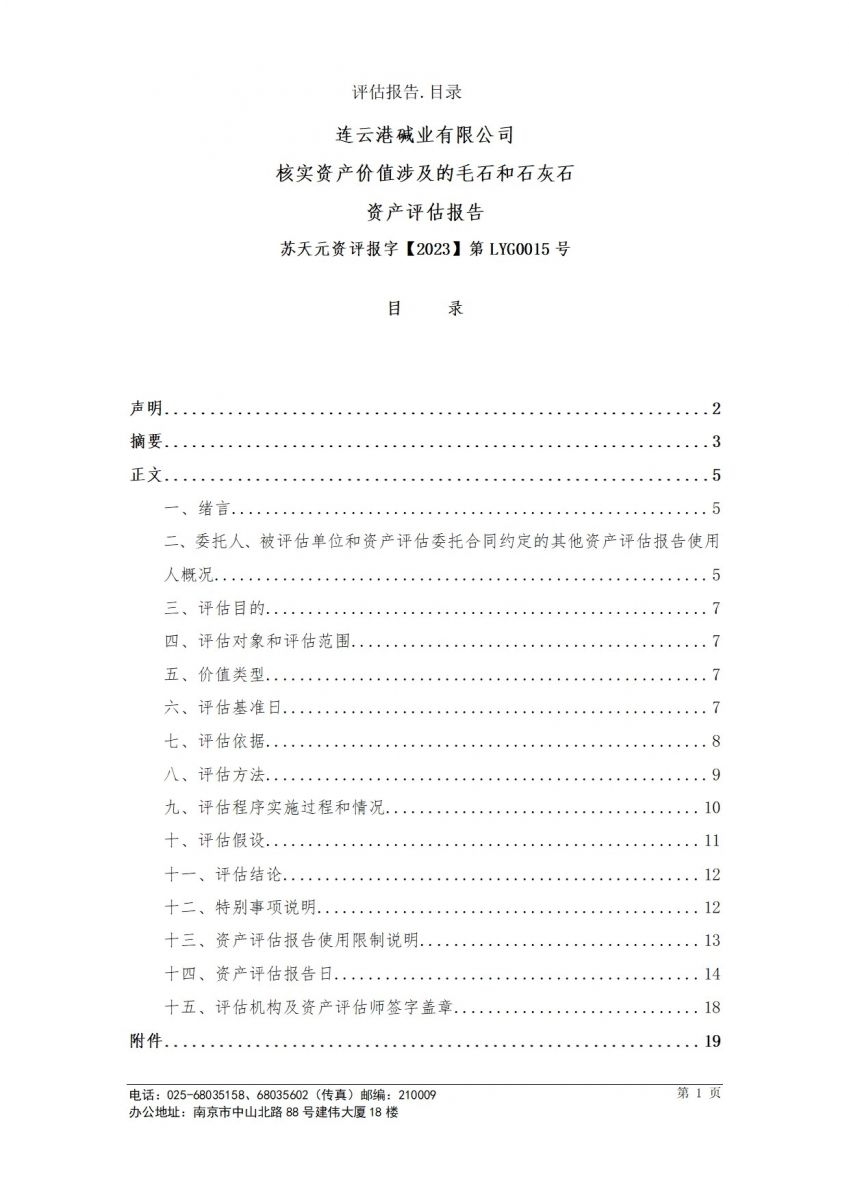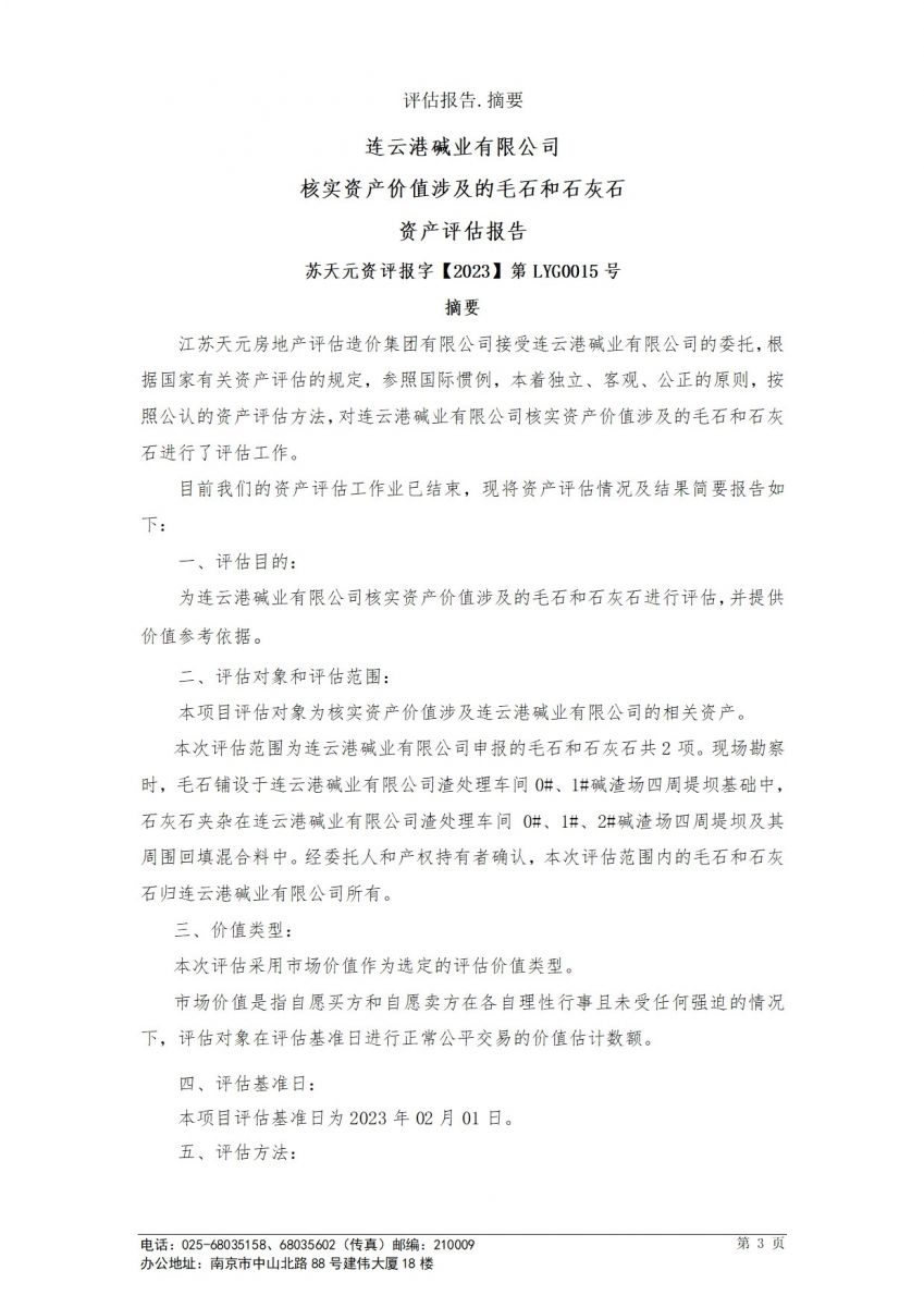 毛石和石灰石資產(chǎn)評估報告