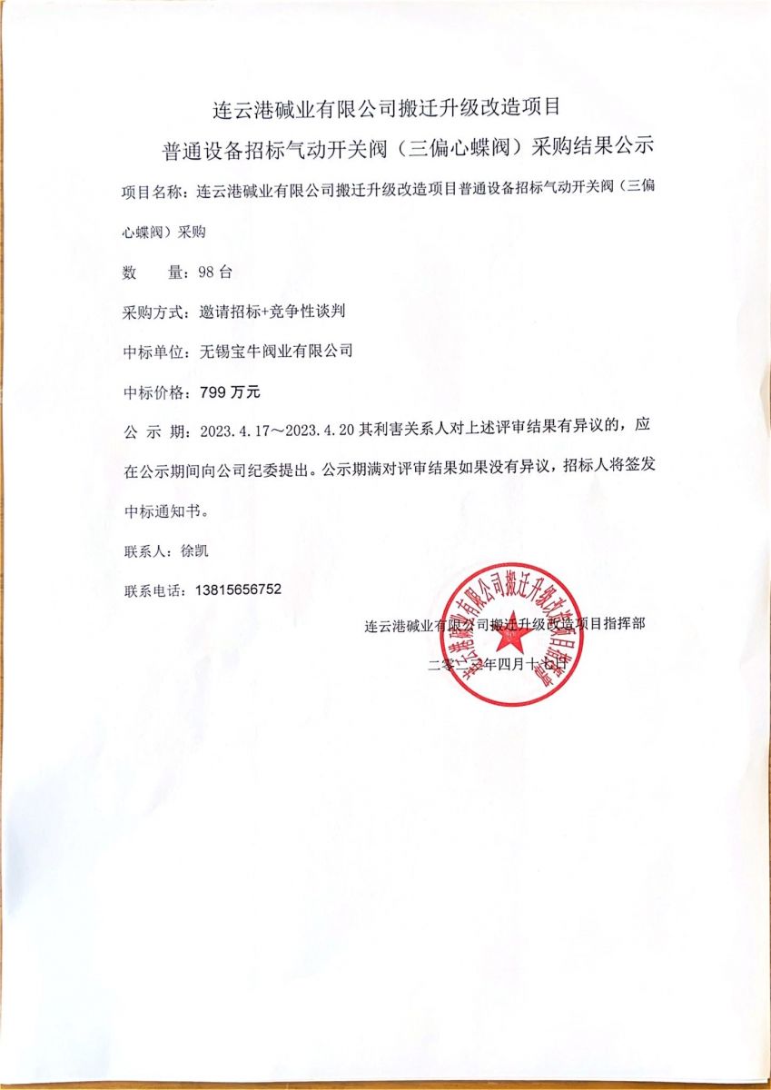 氣動(dòng)開關(guān)閥(三偏心蝶閥)采購結(jié)果公示