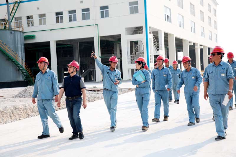 會后,車間領導親自陪同與會人員參觀了新的壓濾機廠房。