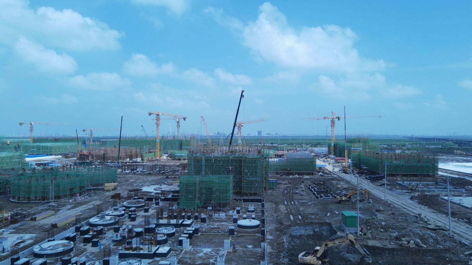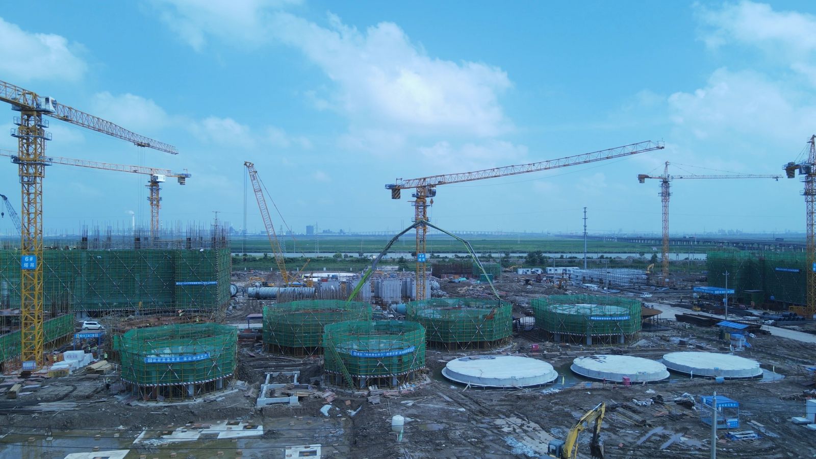 ⑴聯(lián)堿一標段101b聯(lián)堿辦公樓砌體及二構(gòu)施工;152中心控制室鋼結(jié)構(gòu)屋面安裝,基礎(chǔ)磚墻±0m以下砌筑;151化驗中心地坪以下砌體施工準備;340機電儀維修廠房鋼結(jié)構(gòu)屋面工程,廠家預(yù)制加工完成;510重堿車間蒸吸罐區(qū)其他非標設(shè)備基礎(chǔ),V51301A/B頂板及加強筋拼裝、V51301A溢流箱內(nèi)加強筋安裝;532重灰工段深基坑接樁,土方回填;280b換熱站屋面鋼結(jié)構(gòu)工廠預(yù)制基礎(chǔ)磚墻±0m以下砌筑;550壓縮及冷凍裝置空冷器框架,廠房基礎(chǔ)澆筑。