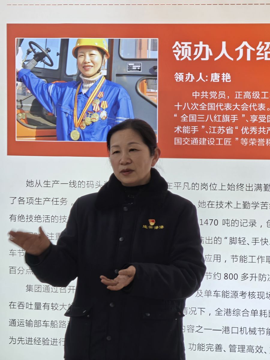 活動第一站,大家乘車前往連云港港口集團(tuán)有限公司,參觀全國勞模唐艷工作室。現(xiàn)場,勞模唐艷為青年職工們介紹了工作室的情況,講述了自己珍貴的人生經(jīng)歷。唐艷鼓勵大家要樂于奉獻(xiàn)、敢于創(chuàng)新,在平凡的崗位上一步一個腳印,才能創(chuàng)造不平凡的業(yè)績。她的話就像是冬日里的一抹暖陽,為青年職工們的內(nèi)心點燃動力的火焰。