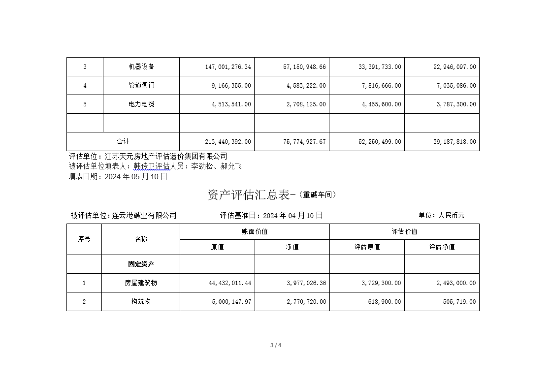 連云港堿業(yè)有限公司煅燒、熱電、重堿車間資產(chǎn)評估公示